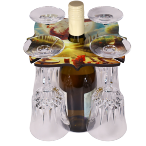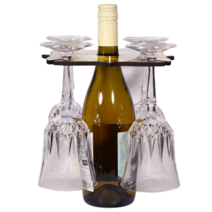 Elevate your wine experience with this beautiful and functional wine caddy! Designed to hold a wine bottle securely in the center with slots for four wine glasses, this caddy makes it easy to transport your favorite bottle and glasses straight to the table. Ideal for entertaining or enhancing your decor, this caddy is as practical as it is eye-catching.
